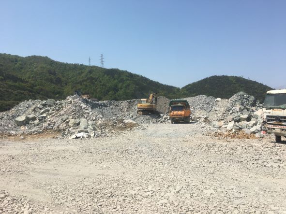 興普大道(海天大道)南側(cè)次干道一期工程(靈秀街隧道)位于舟山市普陀區(qū),連接?xùn)|港片區(qū)與城北開山地塊,項(xiàng)目起點(diǎn)為靈秀街,終點(diǎn)為隧道西北側(cè)出口,左線全長1.302km,右線全長為1.3km。隧道形式為連拱、小凈距隧道,左洞長約1.186km,右洞長約1.184km,為雙向雙洞,單洞凈寬13米,行車道凈高5米,工程范圍內(nèi)建筑石料(凝灰?guī)r)礦資源儲量為741479噸。本項(xiàng)目涉及爆破作業(yè)的工程為靈秀街隧道,其他可采用機(jī)械方式直接挖取。